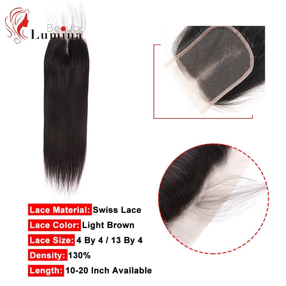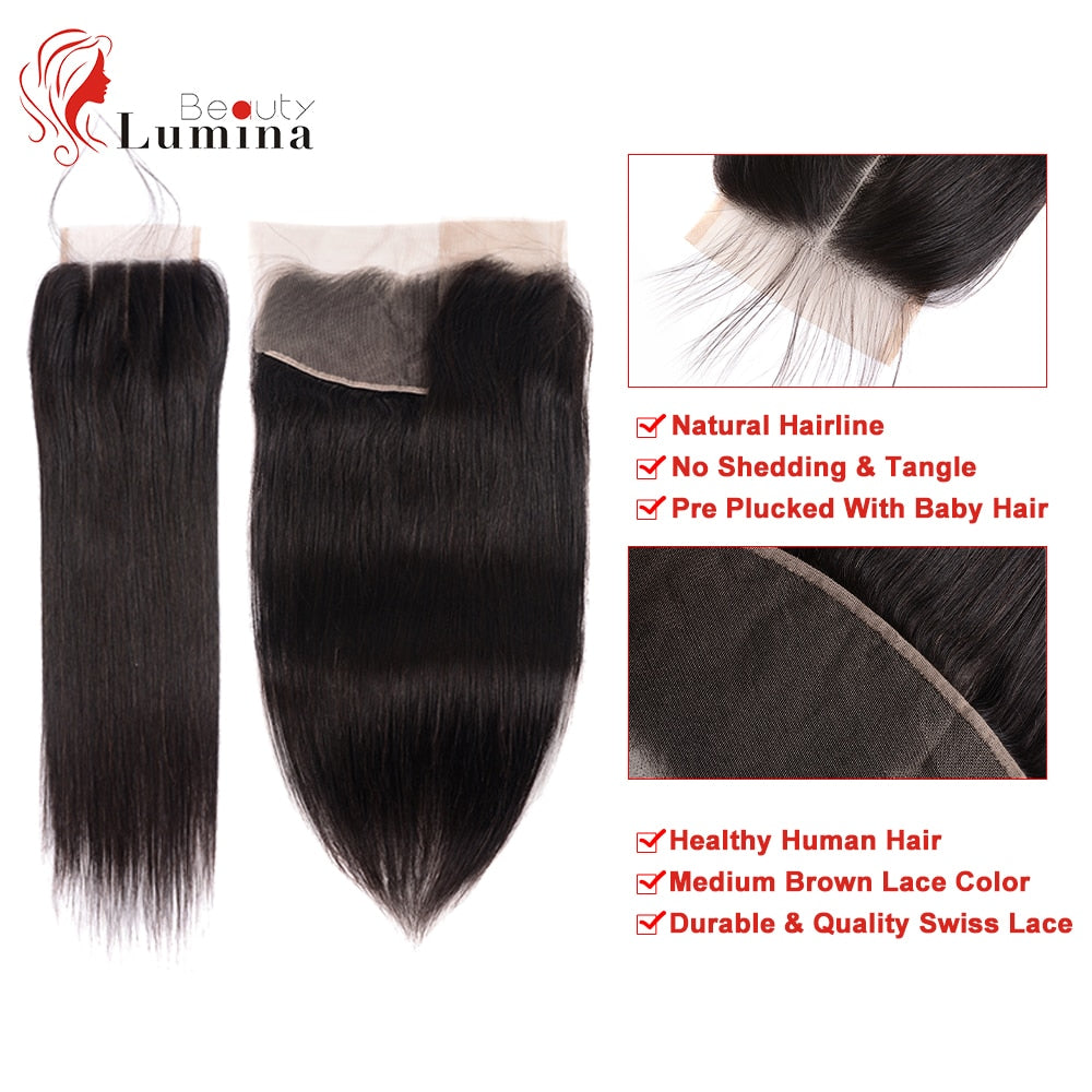 Straight 13x4 Lace Frontal Brazilian Straight Human Hair 4x4 Lace Closures Only Pre plucked Natural Color Remy Hair 8-22inches